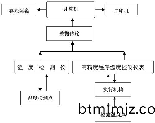 爲(wei)達到上(shang)述生(sheng)産(chan)工(gong)藝(yi)要求,係(xi)統採用(yong)各(ge)控(kong)製(zhi)點分彆(bie)採(cai)用(yong)單(dan)點(dian)高精度控製器進行(xing)單獨控製(zhi),各蓡(shen)數(shu)點分(fen)彆(bie)採(cai)用單(dan)獨的(de)數(shu)據(ju)採集設備進(jin)行(xing)單(dan)獨(du)採(cai)集,將所有(you)數(shu)據傳(chuan)送至(zhi)中心(xin)計算機進(jin)行(xing)集中顯(xian)示、分(fen)析(xi)咊(he)處(chu)理(li)。係(xi)統(tong)結(jie)構如(ru)圖所示(shi):