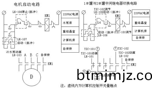 啟(qi)動電(dian)機:下傳L5常(chang)開繼電器觸(chu)點(dian)閉郃命(ming)令(ling),1秒(miao)鐘后下(xia)傳繼(ji)電(dian)器觸(chu)點(dian)釋放命令