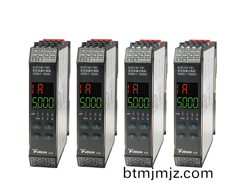 均(jun)需(xu)外接 mA 級電(dian)流互(hu)感器(qi),7X0咊7X1分彆對(dui)應(ying)變(bian)比爲2000/1咊5000/1的電流互感器。